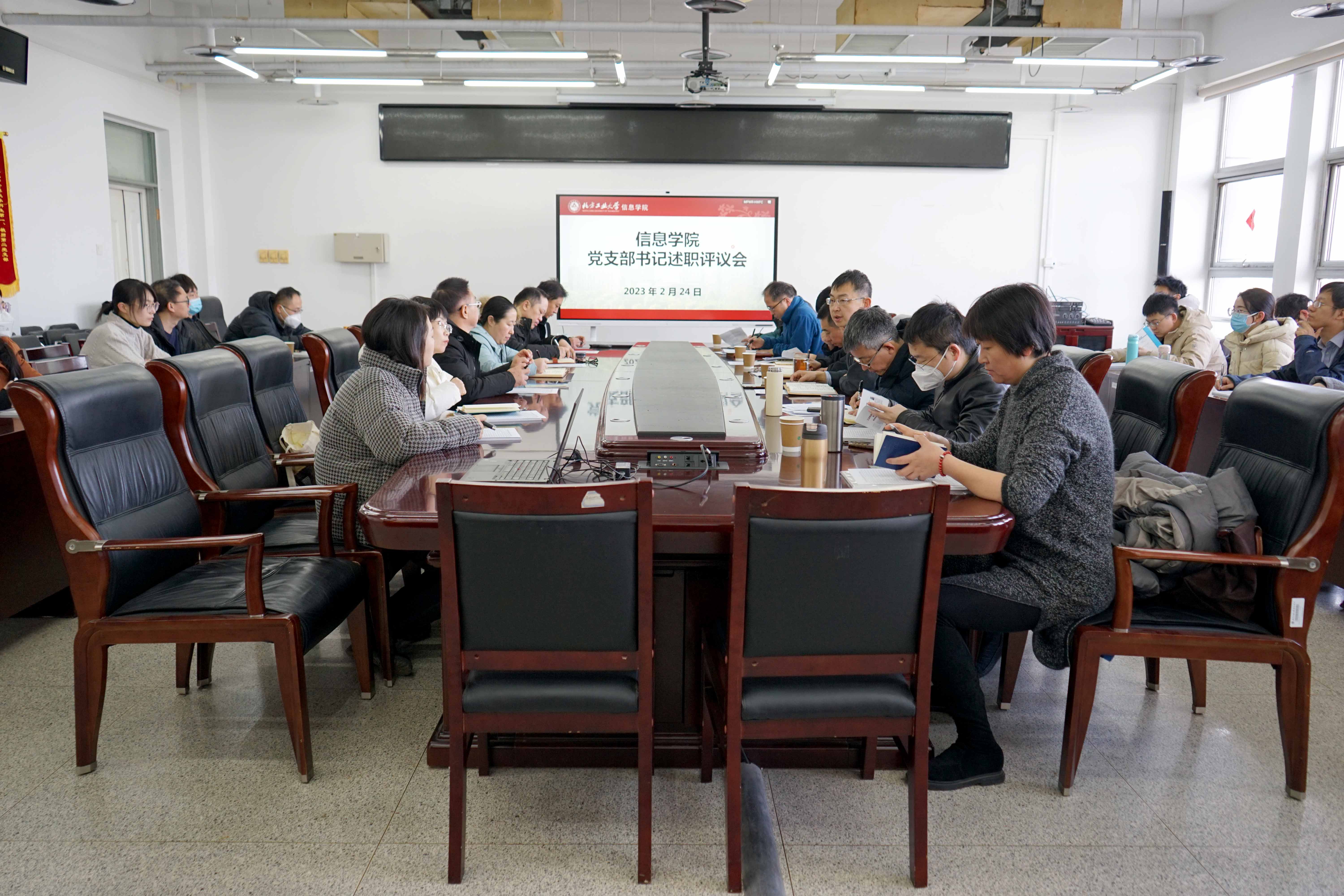 述职会后,召开支部书记工作会议,专题研讨学院党建工作。王月海书记结合自己的述职报告,梳理2022年学院党建工作,从政治方向、特色党建、三全育人、规范化建设、党风廉政、安全稳定等方面进行了总结,并剖析了存在的问题,明确下一步工作方向。就学习效果评价机制、党员管理与作用发挥量化、党建课题研究、如何抓党建等方面内容,与会成员进行了深入探讨。