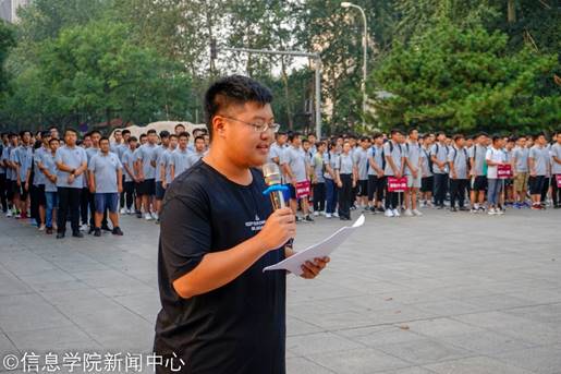 学生代表计18-2班刘雨辰同学进行国旗下演讲,激发同学科技报国之志。
