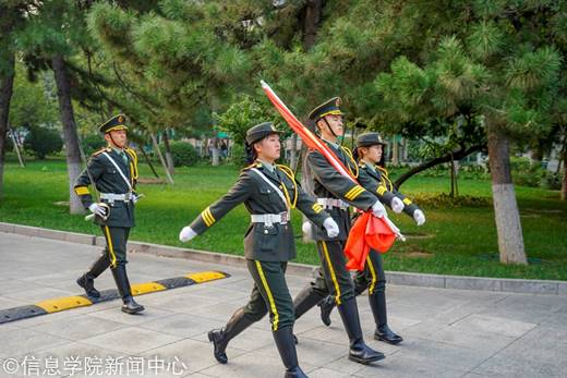 在敦品楼前举办“我和我的祖国”主题升旗仪式。院长马礼,院党委书记刘文楷,院党委副书记陈卫,学院辅导员、班导师代表,志愿者代表,19级全体新生约600人参加了活动。