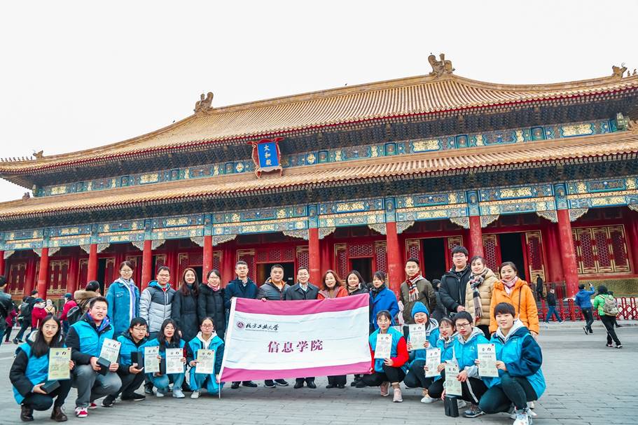 初冬时节的故宫,红垣溢彩,黄瓦流光。在故宫博物院宣教处工作人员的引领介绍下,志愿者一行从午门进入故宫,经内金水桥,穿过太和门,沿故宫中轴线,依次参观了故宫三大殿和后花园。志愿者们无不惊叹故宫建筑群的蔚为壮观,仔细品味着朱墙黄瓦、雕梁画栋、精贵展品,对故宫所蕴含深厚丰富的传统文化深表赞叹,更为能成为服务故宫博物院的一分子深感自豪。在威严宏伟的太和殿前进行了简短的故宫地区志愿服务项目总结,学院党委书记刘文楷、东城区文化和旅游局副局长马庆军分别为志愿者代表颁发了志愿服务证书和纪念品,对志愿者的辛勤付出表示感谢,并勉励同学们再接再厉继续为东城文化和旅游活动做出更大贡献。