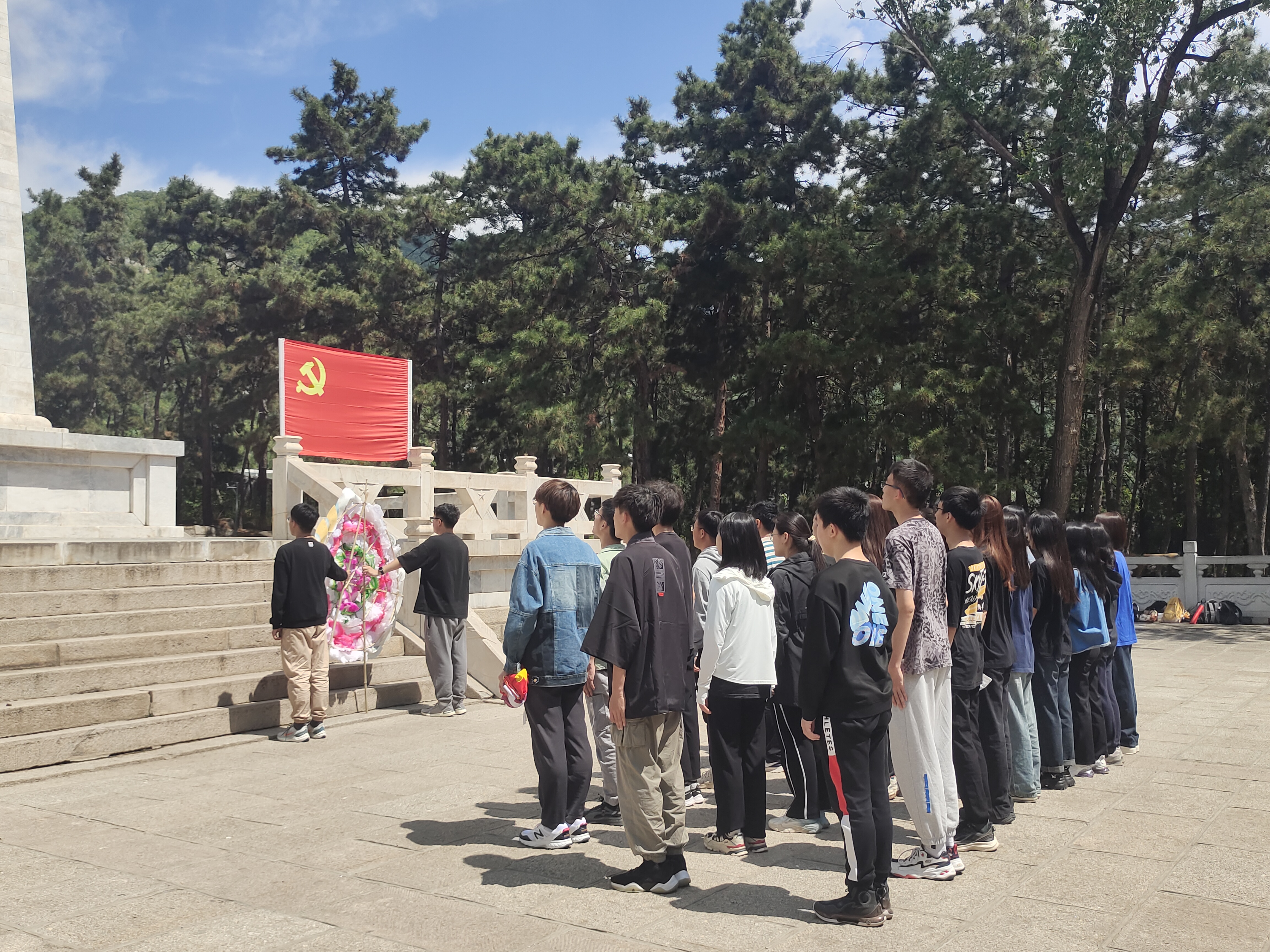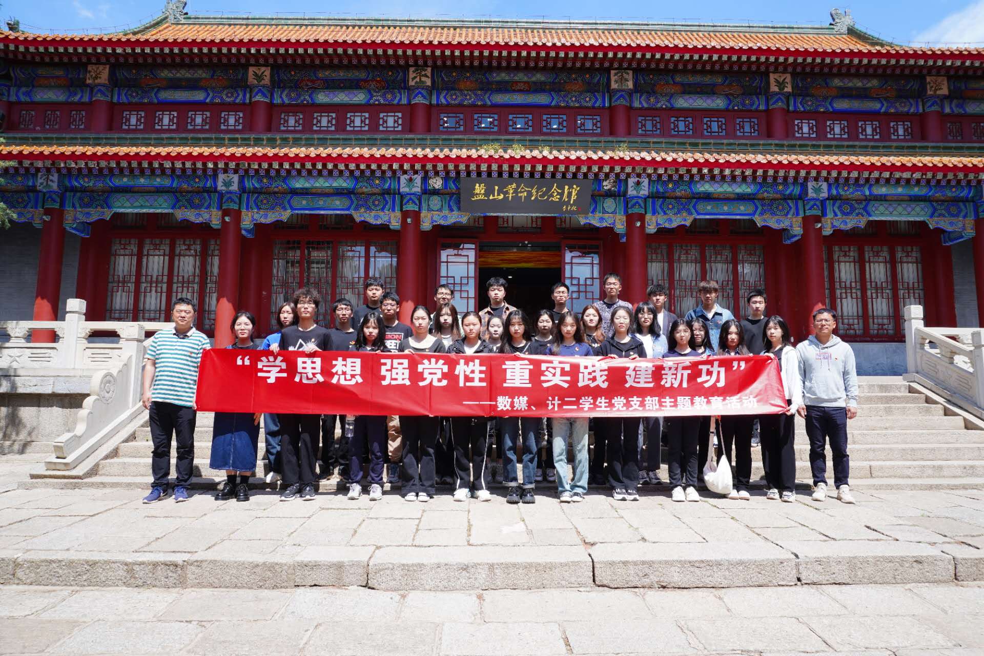 数媒本科学生党支部与计算机本科学生第二党支部一行30人赴盘山烈士陵园和盘山革命纪念馆开展“学思想、强党性、重实践、建新功”主题党日活动。