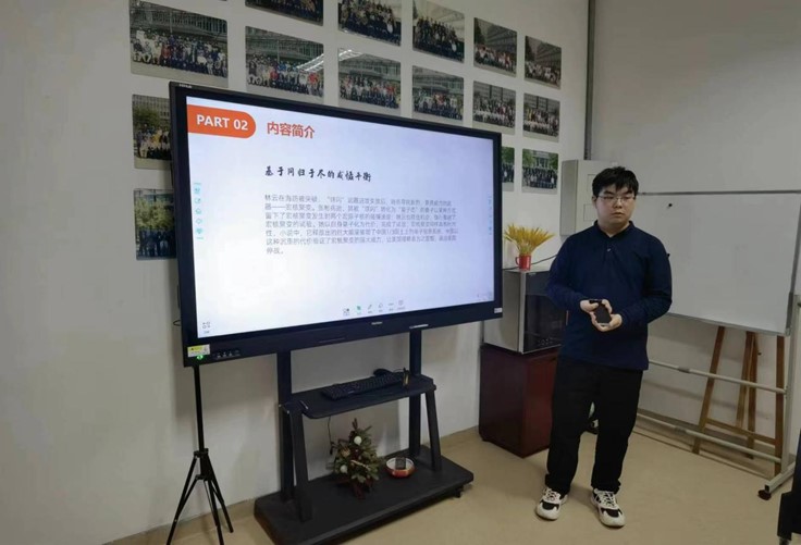 刘正阳同学为大家分享了《边城》,带领大家感受湘西小城宁静的美;苏卓越同学为大家分享了《活着》,带领大家感悟活着的意义;苏雨晴同学为大家分享了《史记》,为大家介绍了司马迁的生平事迹以及《史记》的重要意义。